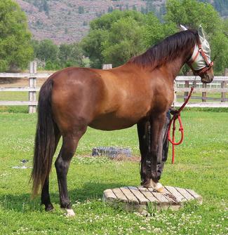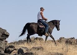 Substantial of build & beautiful to behold. 14.2h. She is friendly & bold, smart and can turn on a dime. MisT has had 90 days professional training and miles and miles on the trails in the mountains. A comment from the trainer is " she just puts her head down & goes for it no matter what we ask of her". Which is exactly what we expected from this mare. This is my preferred riding horse. Our Grand daughter is riding her in the photo.