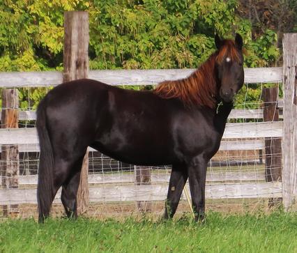 Duchess was born as a bay with no white but soon shed out to a beautiful dark (black bay). Even looks black at times. She's a very sweet and friendly filly. Curious & bold. We just LOVE this mare. She is 15.1h. She had 90 days of saddle training with Talisman Training Center, and has also completed in Competitive Trail Competitions and is a very skilled Combined Driving mare as well. This lady can do it all. She is the 2024 Lippitt of the year!