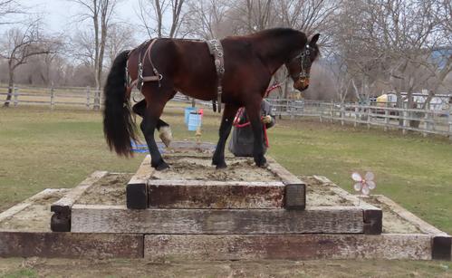 4 year old. Taken by Wanda Iza in May of 2025. He is now had his 90 days of saddle training and is very gentle with the mares put with him for pasture breeding. He is available one more year for on farm breeding, pasture breeding ONLY!